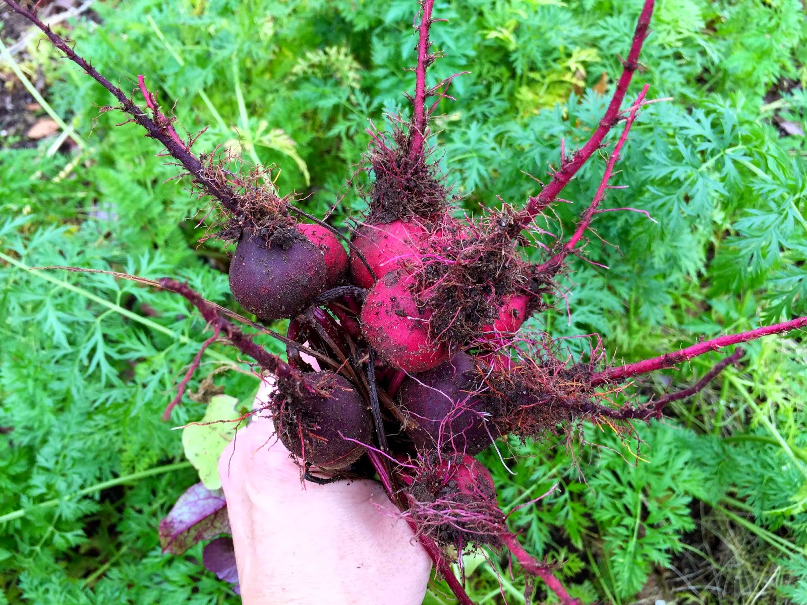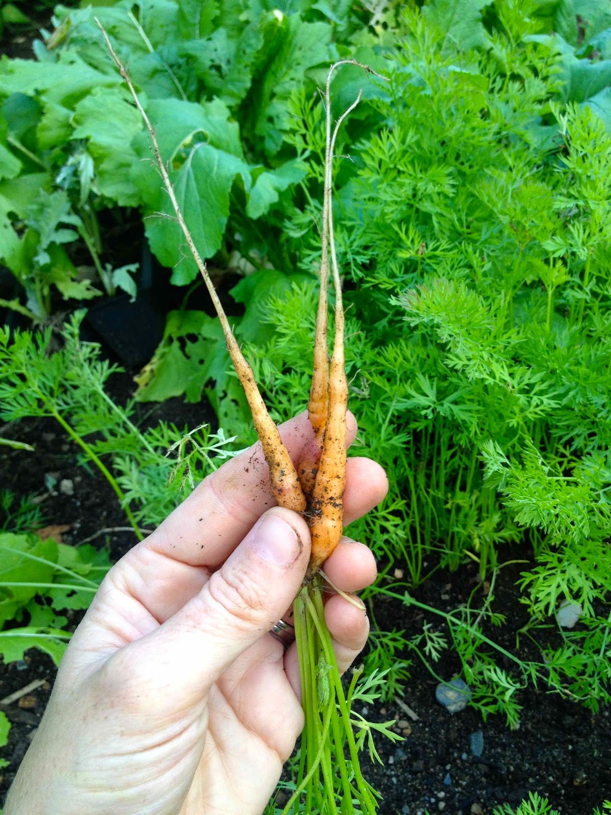 Thinning more of the winter carrots.. thesethinnings were so big, I ate them! Yum!