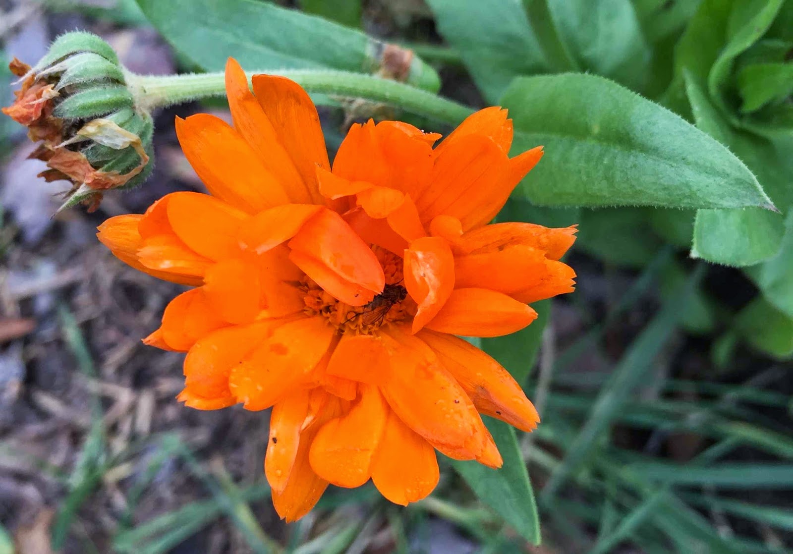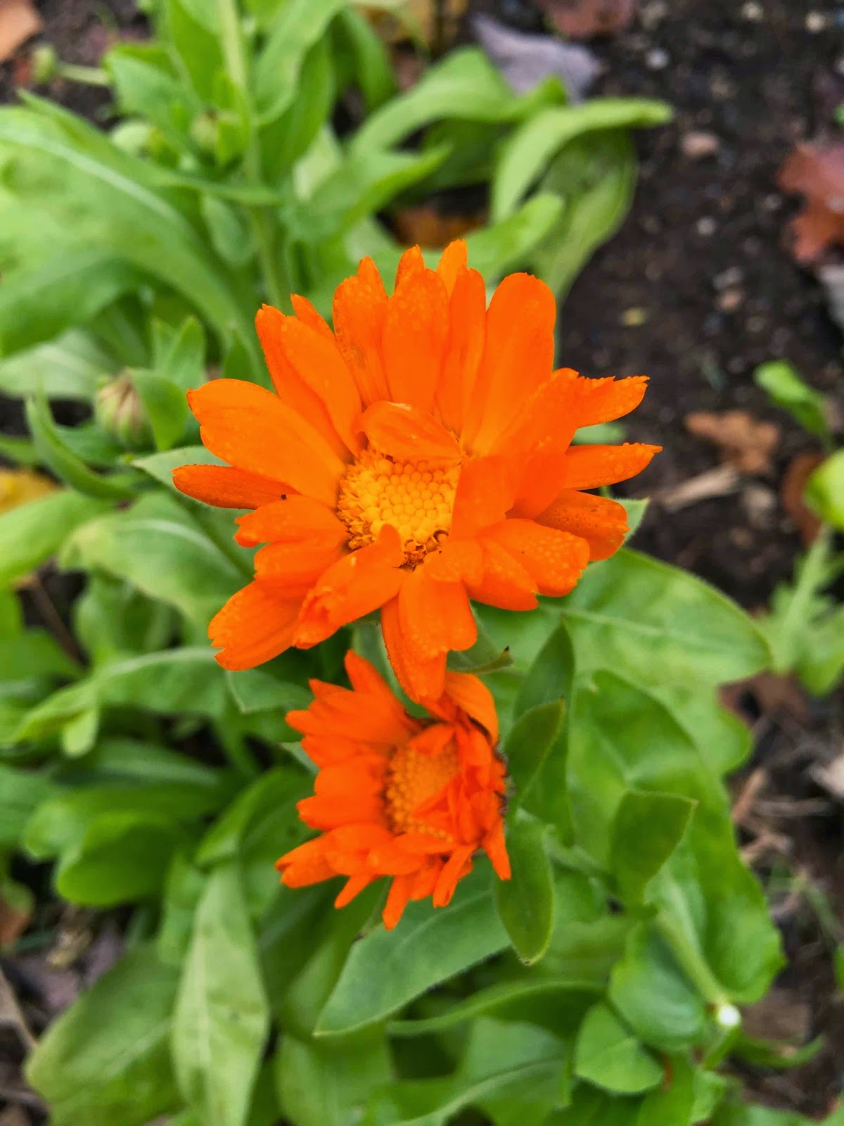 Plenty of calendula still in bloom. The nasturtiumsgave up last week, but these cheerful orange blooms