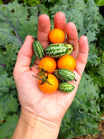 A fun combo - 'Sungold' tomatoes andmousemelons.