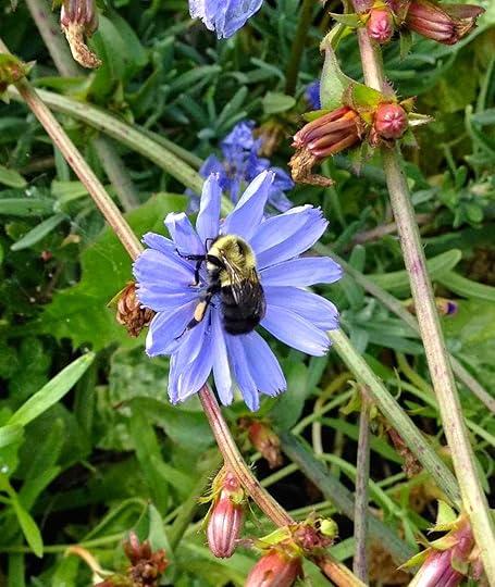 One of the radicchio plants bolted in mid-summer and the skyblue flowers are just lovely - this bee thinks so too!