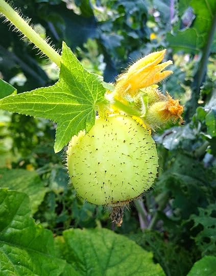 Lot's of 'Lemon' cucumbers still coming.. Thisguy is only 1 1/2 inches across, but he