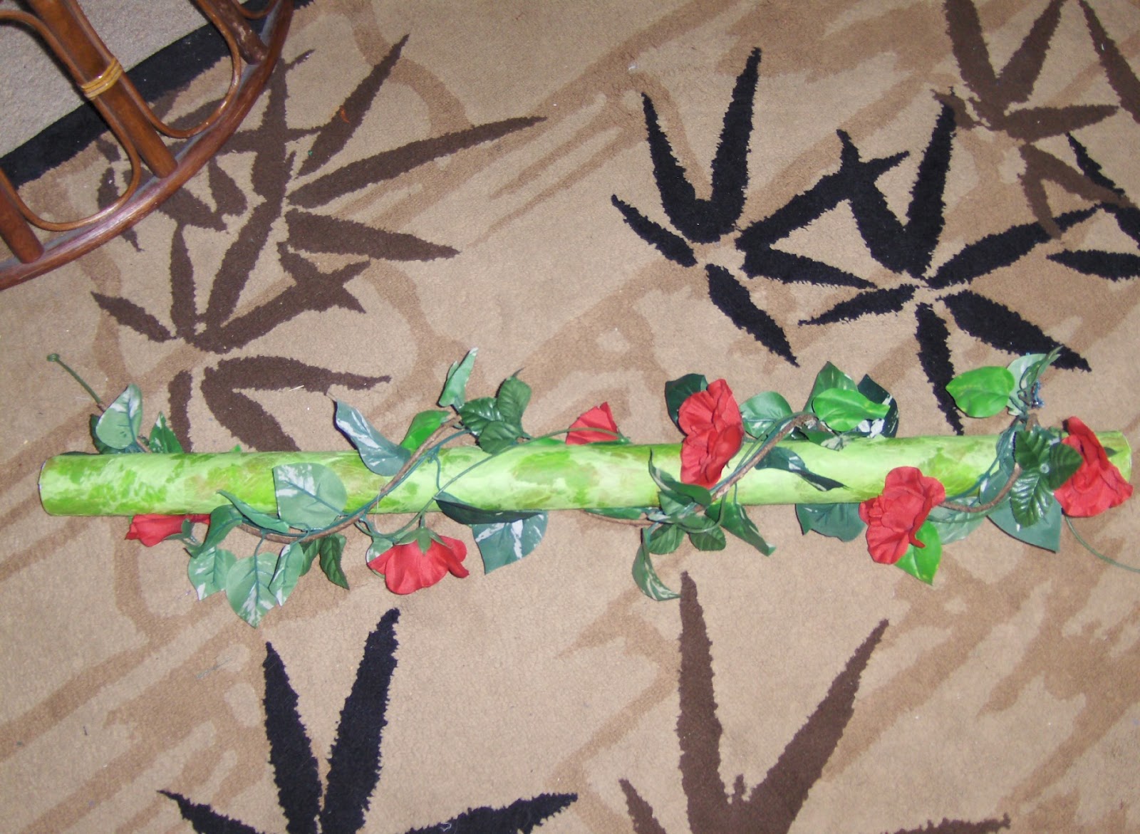 Pour dry beans and rice into the tube and try out the sound. For this project, I used approximately 1 1/2 cups rice and 1 cup of dry beans. The dry beans lend a more resonant, heavy rain sound while the rice provides a more soothing, relaxing sound. If you are not getting the mix of sound you prefer, adjust your mix accordingly. In my case, I noticed that the rain traveled well at the ends, but poured much too fast through the middle. To combat this, I added more nails around the middle and experimented until the stick made the sound I desired. This picture is deceiving. There are many tiny nails in the tube, but only the ones with larger heads are showing up. Once you have the sound you desire, glue or postage tape the ends to the tube and decorate as desired. For my tube, I decoupaged green tissue paper to the tube using watered down white glue. I then added a Dollar Tree vine I had lying about the house. You may choose, instead, to paint it, use wood-grained contact paper, or even make it look more like an actual stick. Whatever you choose to do, please show us in your comments down below! As always, one commenter will be chosen from this week's comments to receive a free .pdf copy of my book, Gifted With ADD: Successfully Managing A Turbo-Charged Mind. Just make sure that I have a way to reach you if you win! Good Luck! Have Fun!