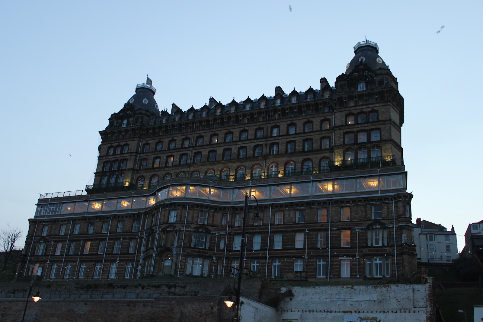 I was excited to get to Scarborough, where I had booked a room at the Grand Scarborough hotel for two nights. I thought it would be a great home base for exploring the coast. But the grand, elegant, old-world exterior of the hotel belied the truth--it was a mini Las Vegas for old people. There were hundreds of them, dressed up, gambling, drinking, smoking, and listening to a bad lounge singer. To make matters worse, our room was located in the BASEMENT. The window looked out onto...nothing. A stone wall was in front of it. We could hear the drunken roar of other guests through the walls. It was wrong in every way possible. This was my tour into history! And how could I immerse myself in history when I was in the midst of so much modernity?