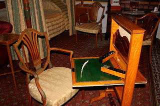 An old-fashioned writing desk, which I believe dates back to the Regency period, if not earlier. I love how it all folds up so neatly. This was obviously a man's desk.