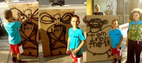 Aw, David Choe gave Caine his first can of spray paint, then they collaborated on this piece!