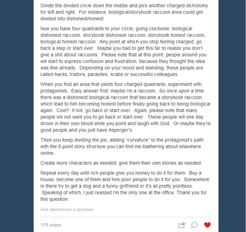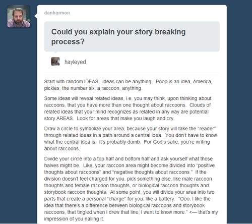 Too awesome not to be made rebloggable. Community’s Dan Harmon explains how to ‘break a story’.