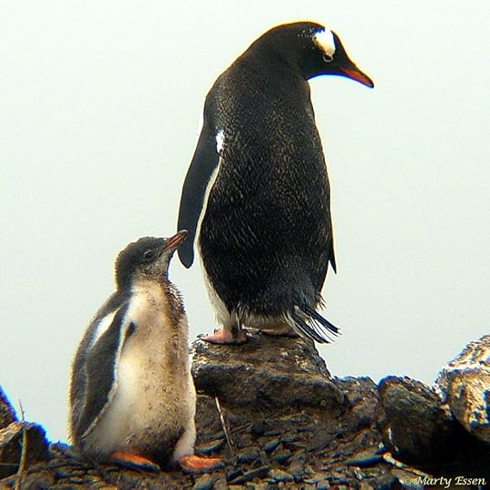 Marty’s photo of the day #2759: Here are father and son gentoo penguins that I photographed on a foggy Antarctica day. How do I know it’s a father and son? Over the years I have posted many “mother and daughter” and “mother and son” animal photos I’ve shot around the world. So this time, to be fair, I’m declaring the adult to be a male. Since male penguins take an active role in rearing their babies, I just might be right.