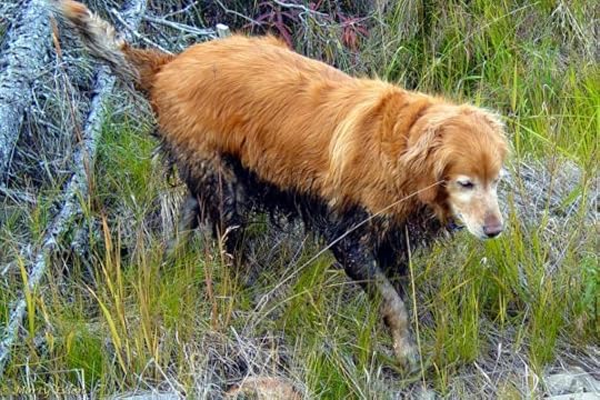 Marty’s photo of the day #2736: “Okay, Dad! I have carefully applied this great-smelling black stuff, and I’m ready to get back into the truck now.”