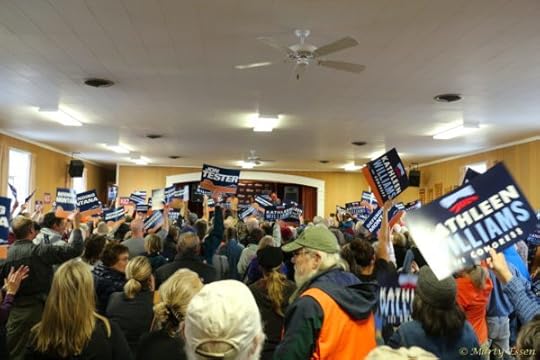 Here’s something to make you feel good about Democratic prospects for Tuesday’s election. I live in Ravalli County, one of the most conservative counties in Montana. Senator Jon Tester, Governor Steve Bullock, and candidate for Congress Kathleen Williams showed up for a rally here yesterday afternoon. The place was packed, and cars were lined up far down the highway. It was a wonderful event. And if people are that excited about the election in Ravalli County, imagine how they are elsewhere.