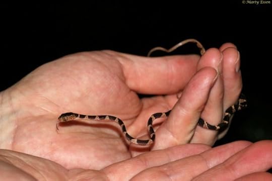 Marty’s photo of the day #2691: In this photo from Costa Rica, I’m holding a brown blunt-headed vine snake. The snake is rear-fanged-venomous, but not deadly. Besides, why would such a cute little thing want to bite me? Actually, just like the venomous cute little banded coral snake from Borneo that actually did bite me, this one probably couldn’t have broken my skin.