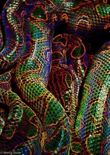 Marty’s photo of the day #2649: Snake Art! When I got my first photo program, many years ago, I experimented with this photo I took of Eve, my rainbow boa. Changing the colors produced some stunning, though obviously unnatural, results.