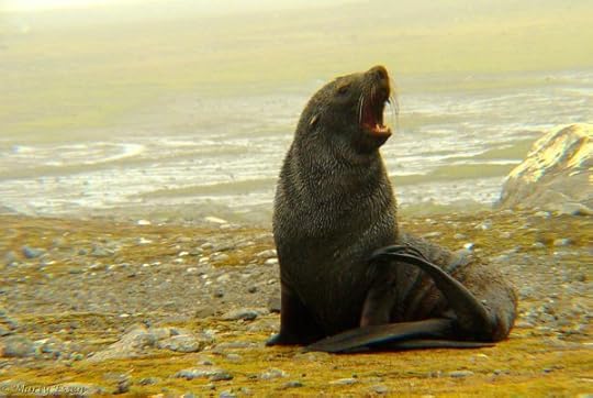 S is for Seal. Female Antarctic fur seals weigh up to 150 pounds and males up to 460 pounds. Antarctic fur seals were hunted to near extinction, as sealers slaughtered them for their luxurious coats. After witnessing how unconcerned fur seals were with humans, I could only imagine what it was like when they were brutally massacred: one day a pristine beach would be covered with seals and the next it would be covered with blood. Fortunately, international protection arrived before total extinction, and Antarctic fur seals have made a remarkable comeback. (Photographed off the coast of Antarctica)