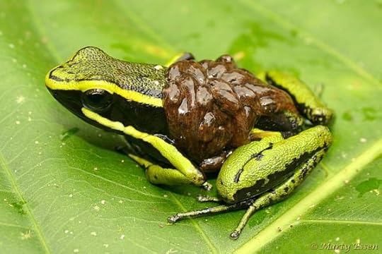 Marty’s photo of the day #2575: I photographed this poison dart frog in the Amazon Rainforest of Peru. Those are eggs on his back. And yes, the frog is most likely a “he.” In most, but not all, cases it is the male that has the egg-carrying duties.