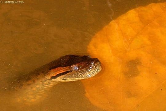 This is an anaconda surfacing for a breath in the Amazon Rainforest of Peru.