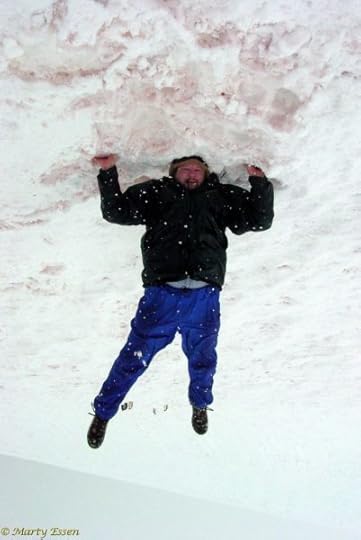 When she arrived, I glanced down at the guano-stained snow. The penguins on the lower section of the glacier added an unexpected element. Had I been thinking, I would have made use of the clean snow near the summit. Oh well, a promise is a promise. I leaned over, pushed the top of my head against the glacier, propped my hands out on either side for balance, and lifted my legs straight into the air. Anywhere else I would have been doing a headstand, but here on Antarctica I was holding up the world!