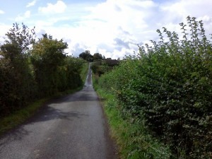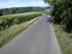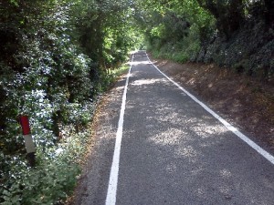I turned off the highway onto a narrow country road, two-way traffic, eleven feet wide. This is known among cyclists as a white road. A white road indicates the color that it is shown on the national touring maps. The British government does a series of regional maps called touring guides that are astonishingly precise, and show all the tiny roads and give their gradients.