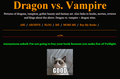 It's fun. Pictures of dragons, vampires, gothic stuff, book humor, and other stuff I want to share.