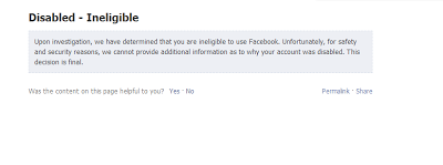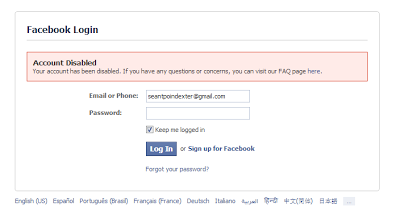 I was literally in the MIDDLE of a conversation with two of my friends when The King of the Dragon's Facebook account was disabled. When I tried to log in, Facebook threw one of these at me: