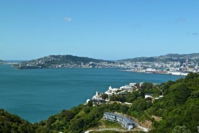 Wellington is built around a nearly circular harbour, with houses perched in some fairly ambitious places. The two white towers silhouetted against the water belong to one huge rambling creation by one of our local architects. Ian Athfield lives and works in what is practically a small village - and has raised the ire of neighbours and town planners alike, but photos I've seen of the interiors look pretty amazing. The hilly area on the other side of the harbour is Oriental Bay (down low) and Roseneath (up high). Christian's house in 'The Wrong Sister' is here, and that's where Kerri in 'Seduction on the Cards' wanted to live - if she could ever save enough of her fast-disappearing money.