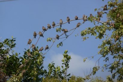 Just like these sparrows waiting for dinner on one of our trees, I was left waiting...waiting.