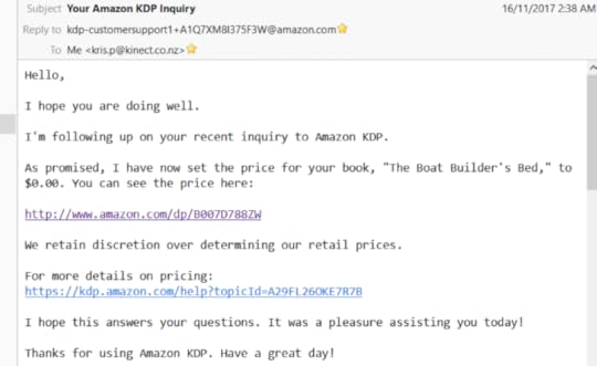 With Amazon, we have to go begging. We get rather grudging messages back saying they’ll consider it. And a couple of days later, another to say that they’ve done it but reserve the right not to. They 'retain discretion over determining their retail prices'. OK, it's their company, but here’s the last reply I got on November 16 -