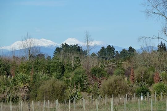 Before the conference, I drove almost four hours north of Wellington to stay several nights with my lovely sister. Then I collected my author friend Kendra Delugar and we drove north for several more hours until we arrived in Rotorua where the conference was. The weather on the way home was gorgeous, and we passed the three famous volcanoes looking absolutely splendid and snowy and scenic. We stopped and took photos - possibly at some risk to our lives on this very busy fast-traffic road.