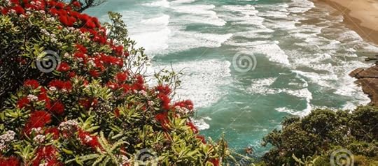 Okay, the search was on for an alternative nice piece of New Zealand scenery where this story might have taken place. After using up a lot more data I found the perfect place. No scarlet flowers on the trees, but very much prettier.