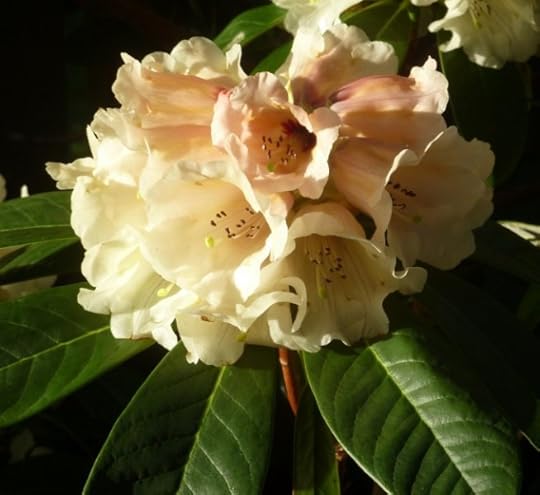 Wish I knew the name of this. Big tree, big leaves, huge spectacular waxy flowers. Had it for years, so I should go to the garden centre and try and track it down.