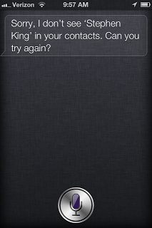 Alas, Siri didn't seem to know Stephen King, and, in fact, isn't much of a book lover at all. Hopefully it won't dampen King's birthday any. I suspect it won't.