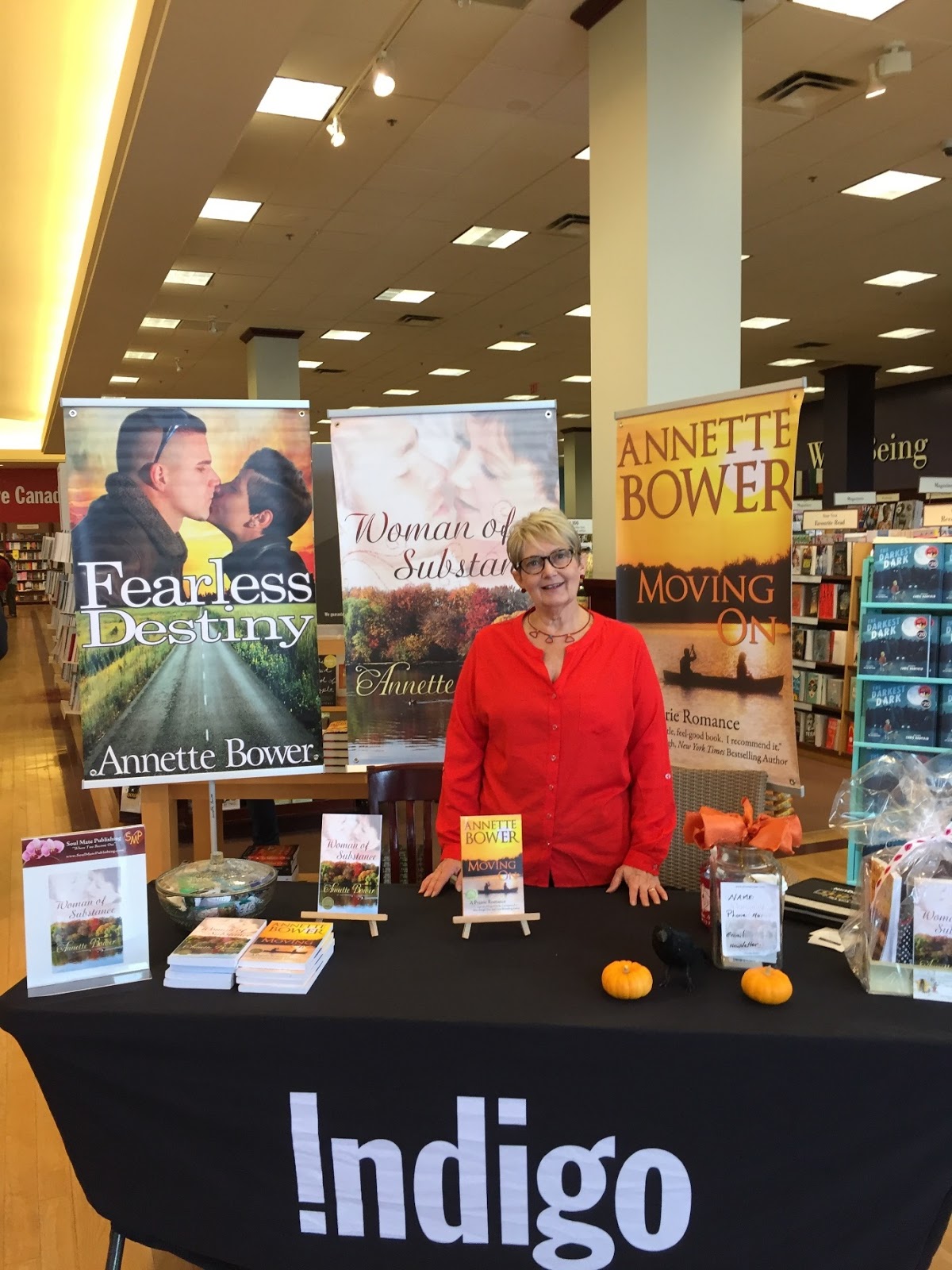 Me at book signing in Regina, SK October 2016. Bio:Annette Bower believes home is where the story begins. Annette has travelled extensively, but has always returns home to Regina, Saskatchewan. Her experiences as a nurse, administrator, town councillor, teachers’ assistant and student inform her stories and reflect the experiences of many readers. Annette’s stories are read around the world and have been shortlisted on many national and international stages.www.annettebower.com