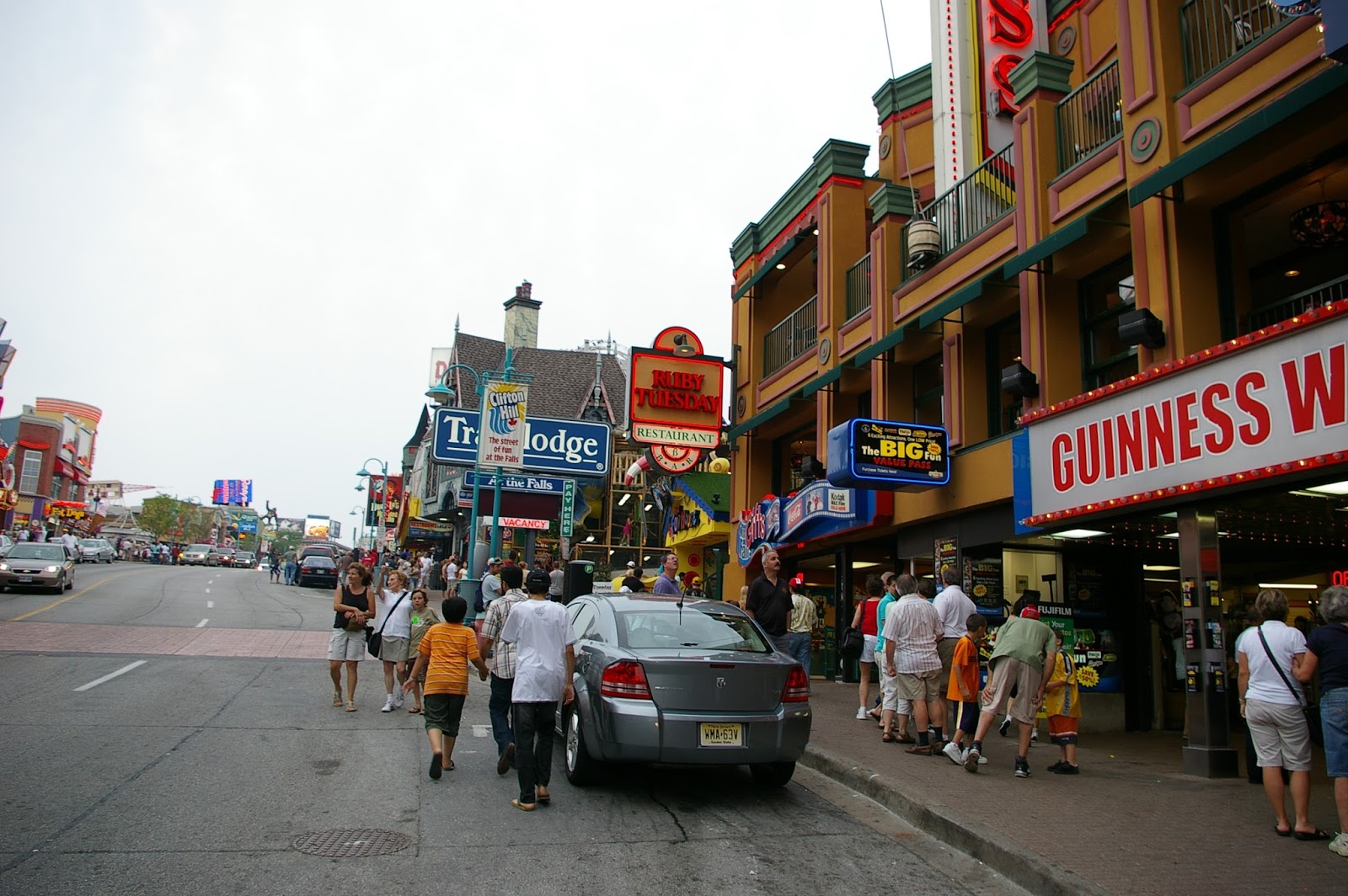 View from our hotel room. What is there to do after you visit the Falls? A bunch of stuff.Clifton Hill - shop - games - House of Horrors :-) (See the hill. Remember the warning about not wearing high heels)