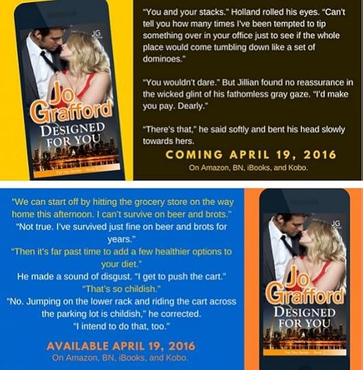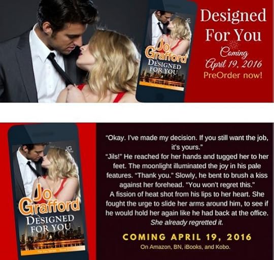 BOOK INFORMATION TITLE – Designed For YouSERIES (& Book #) – For You Series, Book #1AUTHOR – Jo GraffordGENRE – Contemporary RomancePUBLICATION DATE – April 19, 2016LENGTH (Pages/# Words) – 86,000 wordsPUBLISHER – JG PressCOVER ARTIST – JG Press