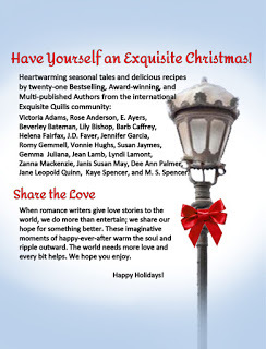 We hope you enjoy this collection of heartwarming seasonal tales and delicious recipes by twenty-one Bestselling, Award-winning, and Multi-Published Authors from the international Exquisite Quills community: Victoria Adams, Rose Anderson, E. Ayers, Beverley Bateman, Lily Bishop, Barb Caffrey, Helena Fairfax, J.D. Faver, Jennifer Garcia, Romy Gemmell, Vonnie Hughs, Susan Jaymes, Gemma Juliana, Jean Lamb, Lyndi Lamont, Zanna Mackenzie, Janis Susan May, Dee Ann Palmer, Jane Leopold Quinn, Kaye Spencer, and M. S. Spencer.