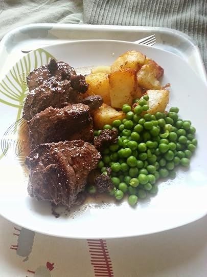 As I had vegetables left over from the weekend I served the kangaroo steaks as with the lamb.This was the first time that I'd eaten kangaroo and wasn't disappointed. It was quite coarse in texture and tasted slightly like liver but as I like offal that wasn't a problem for me.