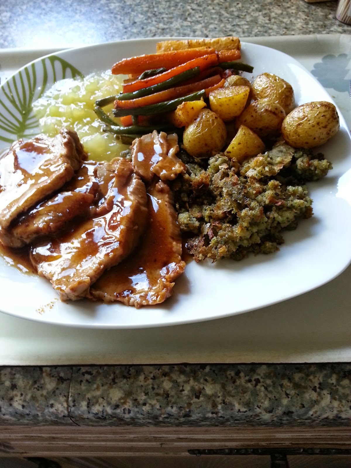 Finally, the weekend meals were roast park with the trimmings and roasted vegetables.