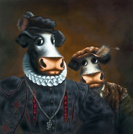 I saw a print of Caroline Shotton's work in a gallery and was intrigued by the use of cows as characters. There are also Elizabeth I and Henry VIII to name but two and the one below made me smile also.