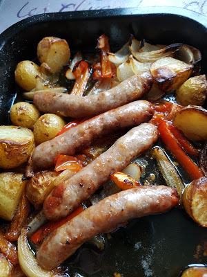 I was recently appraised of the knowledge that Morrison's chipolata sausages were the best, according to Which magazine, for flavour, low fat and meat content. So I bought some and tried them a couple of different ways. The tray bake above was particularly suited to the current season and is dashed easy to prepare and produce. Also as sausage are a comfort food for many children the dish contains vegetables that will come out tasty and healthy.