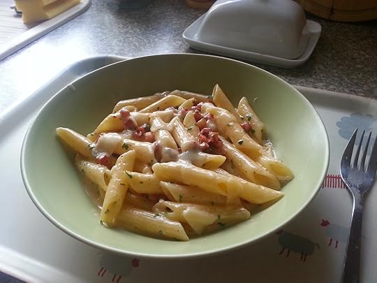 A couple of offerings this week but once again on the Italian theme. I enjoy carbonara sauce and have had it with spaghetti but I found a recipe by James Martin using penne pasta.