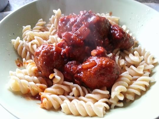 This meal came from a piece of opportunism. I had gone shopping with the aim of producing something Italian so I had tomatoes, oregano, onion and garlic in my trolley I just wanted something to go with them. The venison meatballs were on offer so I snapped them up. The Italian sauce is standard and easy to make. It forms the basis of other dishes such as lasagne and bolognese so it made for an easy cooking weekend.The photo above show the meatballs with fusilli but I also served it with spaghetti. Its tasty with either if you like Italian food.If I was a purist I would start with minced venison, herbs, breadcrumbs, egg and make my own meatballs but as I'm not a real chef I feel it is my duty to seek out short cuts and cheats!!!!