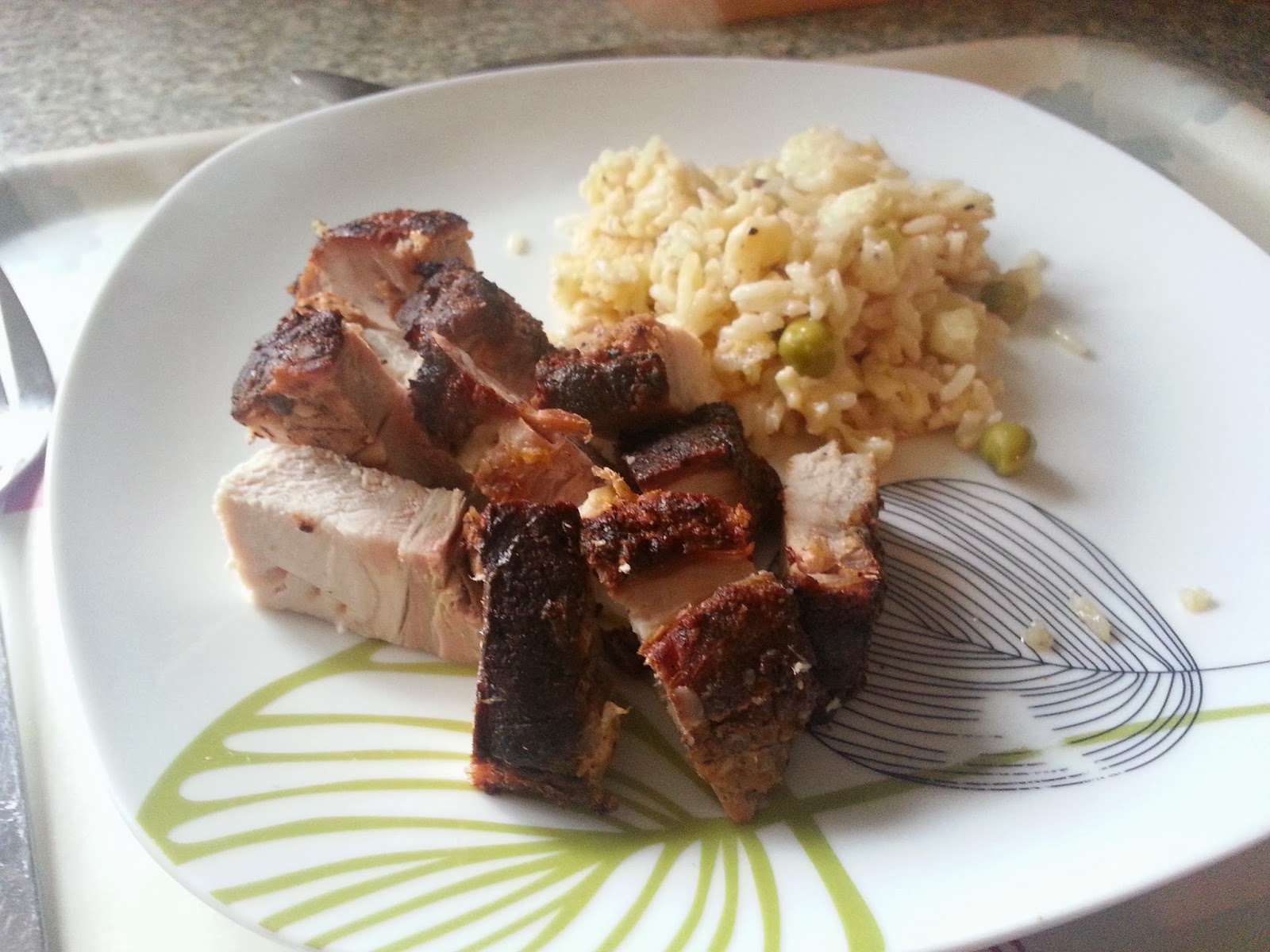 Cubes of crispy pork served with egg fried rice all of my own construction. If you like pork put fancy doing it a little differently then this is an easy way to spice up a joint. It requires a long period of preparation because you have to start the day before the meal is required but it is not difficult! Well I managed so it can't be. The egg fried rice is very straight forward as well but the full recipe is on the relevant tab.