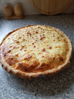 While the pastry is in the fridge prepare the filling. Fry off the chopped onions until soft and allow to cool. Beat four eggs and two egg yolks in a bowl and add the creme fraiche, season and add half of the cheese. Sprinkle a quarter of the cheese over the pastry base, spread the cooled onions over the base and then pour over the egg/creme fraiche mix. Season then add the remaining cheese and place in the oven for 30 - 40 minutes.