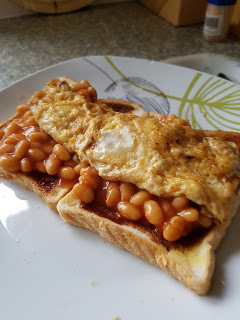 Beans on toast is a pleasant relief to the rich foods but can be a little bland. To liven the meal up I often spread Marmite on the toast but this week I had one egg left and decided to try out a japanese recipe.