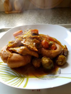 This was the left over gravy and vegetables from the above curry with a handful or two of rice thrown in. Cooked for twenty minutes until the rice had absorbed some of the juices. I had removed the turkey meat when serving this previously so that it wasn't being re-heated for the second time. So very much a vegetarian option.