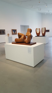 Yesterday I visited the Hepworth Modern Art Gallery in Wakefield. It is a distinctive building which my mother thought was awful and I must admit I'm not keen. Inside the place is Japanese in its simplicity and I must admit very comfortable to walk round.The first exhibit you come across is absolutely beautiful and is by Henry Moore with the title Reclining Figure. It is carved from elm, highly polished and is the oldest wooden sculpture in the country.