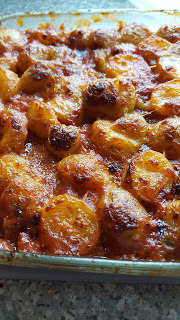 So what you have is an Italianate lamb meat sauce with a cheesy potato topping. Purists would have you make a separate cheese sauce but this method is less time consuming, less wasteful and quite slimming in that you use less of the minimum sauce ingredients and still the potatoes are covered without being too gloopy. Ingredients like the garlic and oregano are my preferences and you add or leave them out according to personal taste.