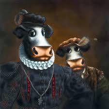 Finally, using stories in art, the above excellent interpretation by Caroline Shotton shows to me how a good story can generate more than writing and film. The two characters in the painting are from the Blackadder series from TV.