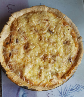 Goodwood TartI had a roll of frozen pastry left from last week's recipe and cast around for something with which to fill it. I'm afraid those who are worried about their cholesterol, or sleepless nights due to screaming arteries should probably avoid this recipe. Then again don't you find it to be the case that the best dishes are the ones which are bad for you?