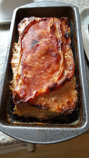 No great secrets this week just a fairly standard meatloaf. It is only the second time that I have cooked a meatloaf and it isn't difficult. I did change the recipe somewhat due to a lack of availability of lamb mince. I did carry out some research into a variety of recipes for this dish and having thought about it one of the key factors must be the liquid content after baking. Too wet and it will be like soup, too dry and it will resemble a brick! There isn't a great deal of liquid in the recipe, about 5fl/oz of milk and an egg, and on top of that just whatever fat is in the meat. Even so when it came to removing the loaf tin from the oven the meatloaf was surrounded in fat which I poured away.