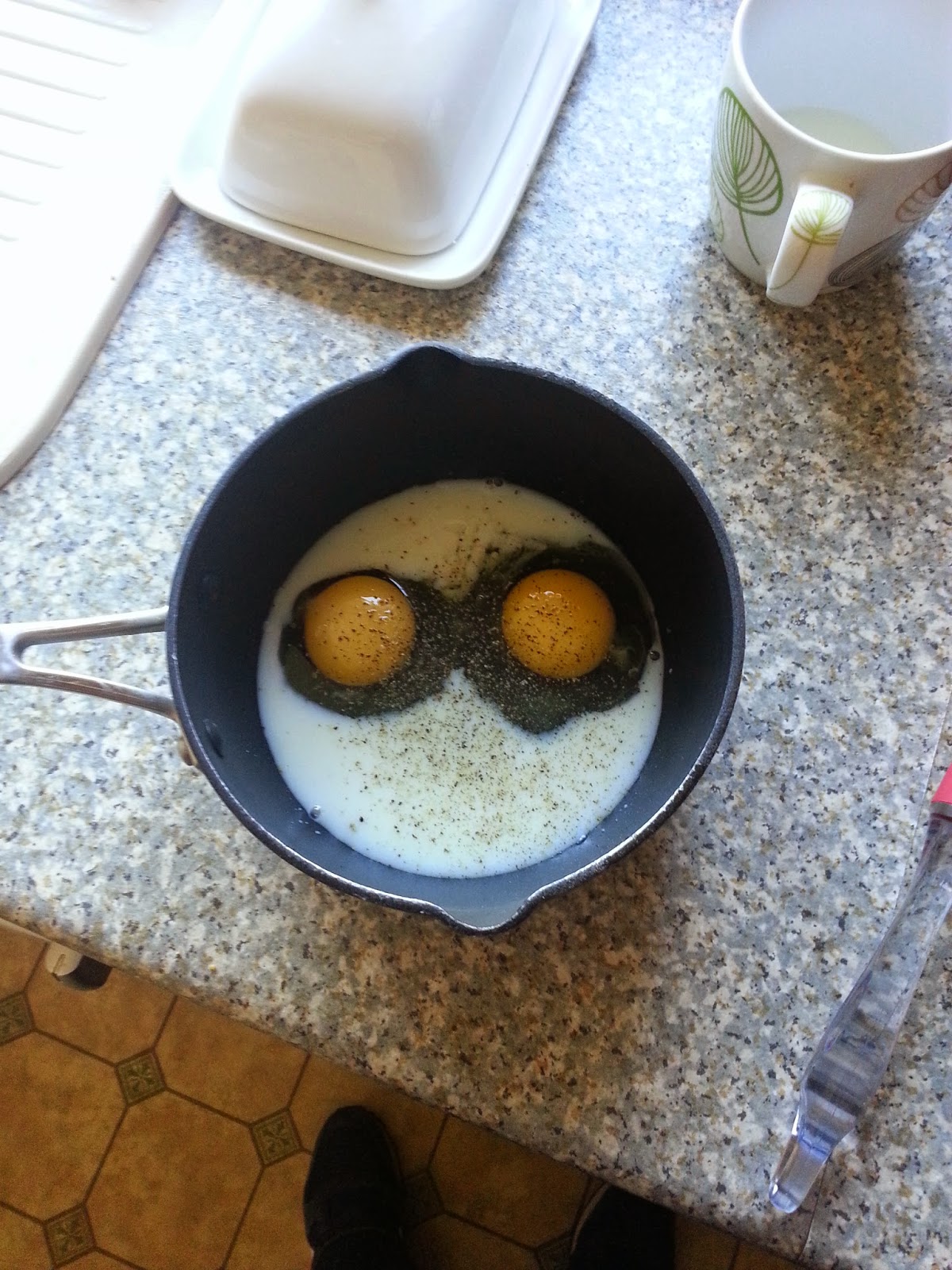 Was something emerging through the milk in this pan this morning? I thought I was preparing scrambled eggs!