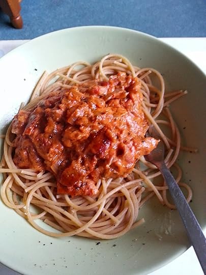 Tuesday cooking - Creamy chilli, bacon and tomato spaghetti